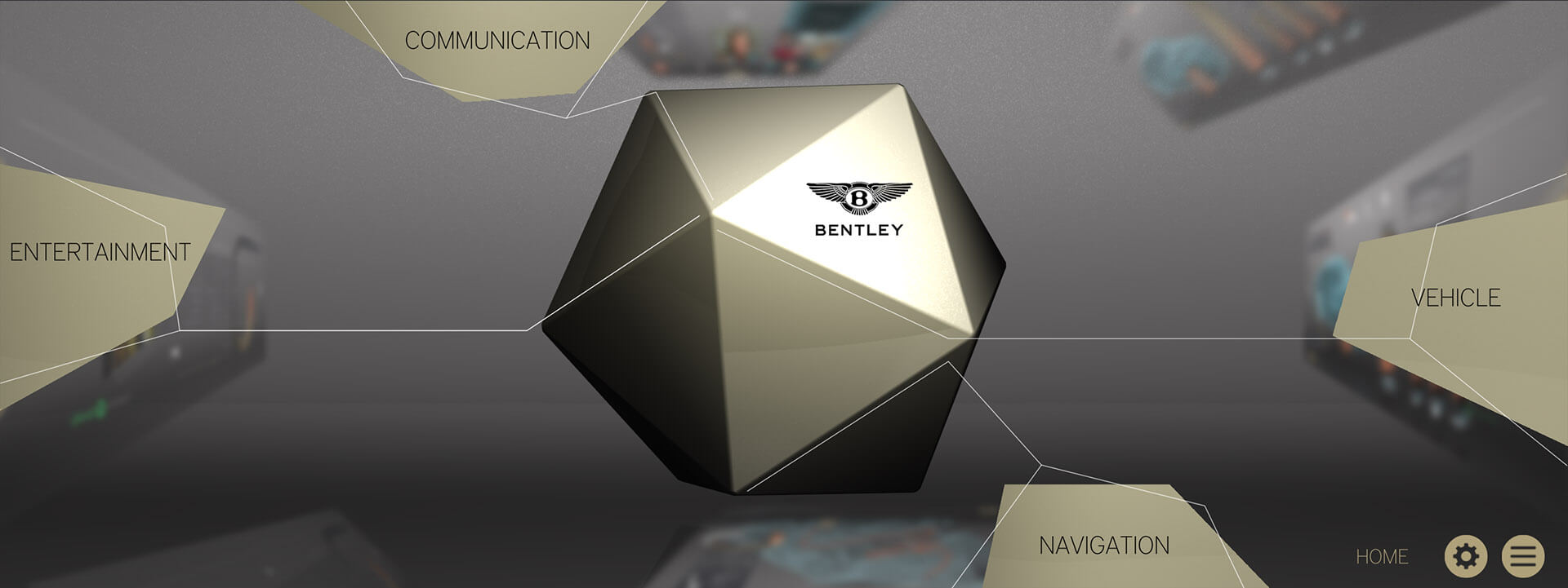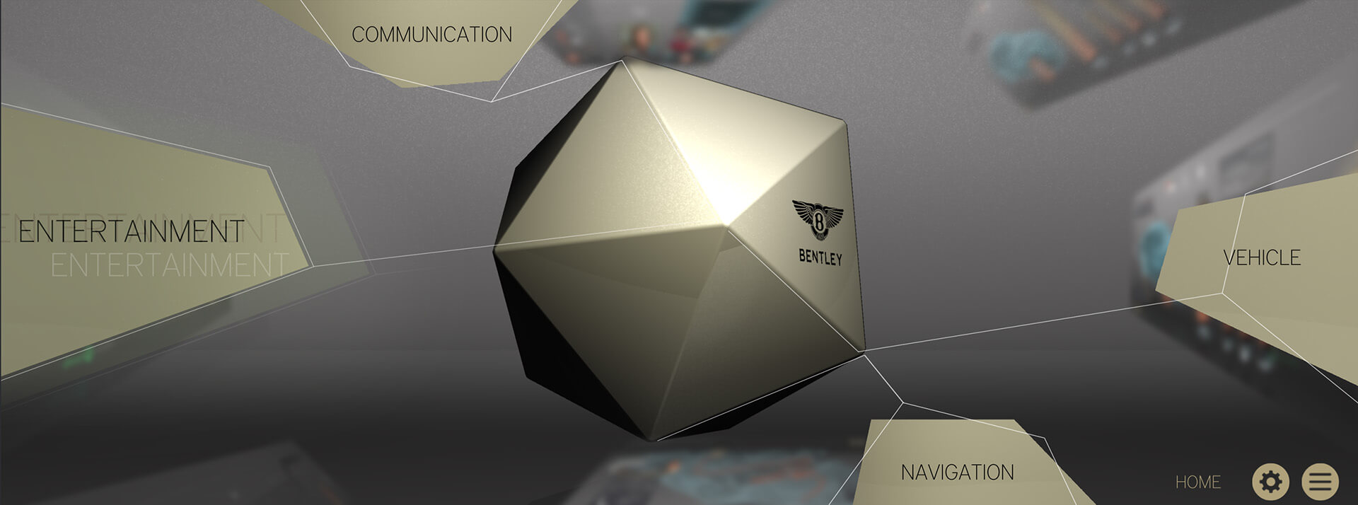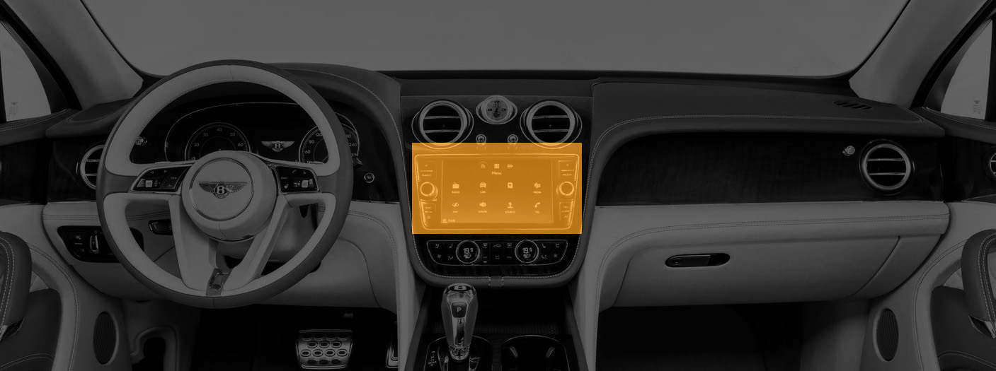 Button at left returns user to home screen. The left bias reflecting the vehicle screen’s relation to Home